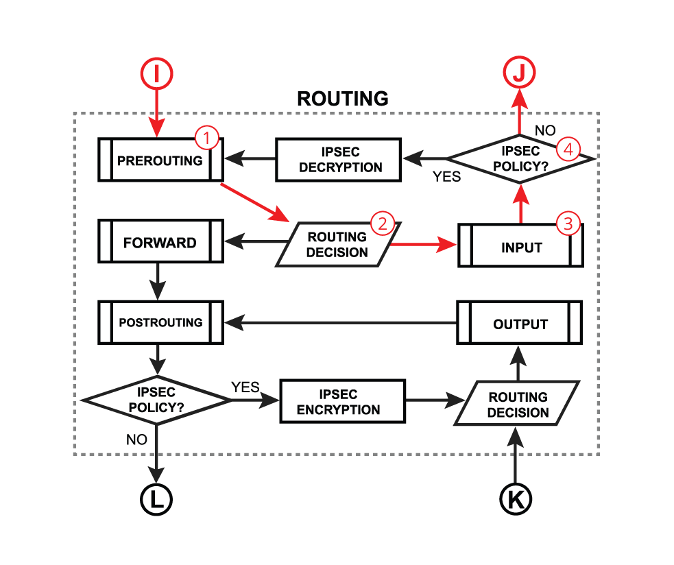 * Rules in this chain apply to packets just before they’re given to a local process. This chain is present in the *mangle* and *filter* tables.