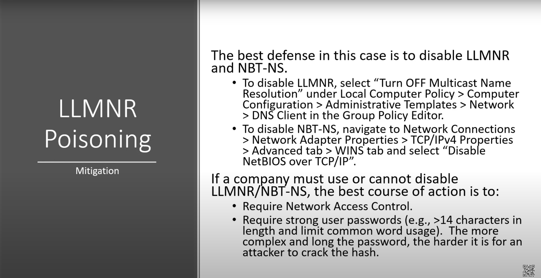 To ensure that these spoofing attacks are not possible, we can disable LLMNR and NBT-NS