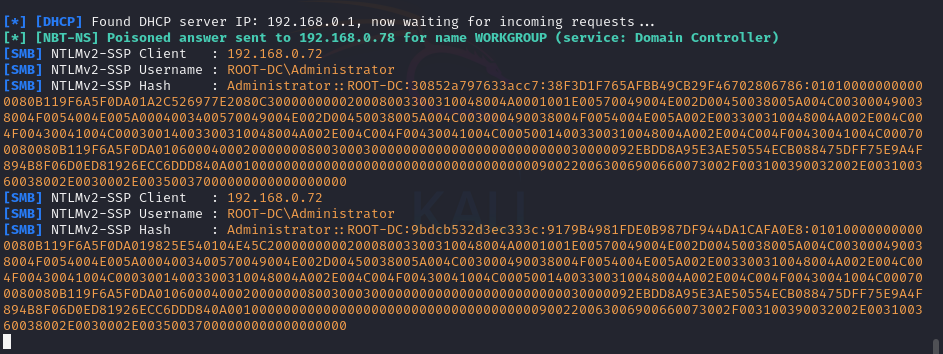 If you are successful and manage to capture a hash, Responder will print it out on screen and write it to a log file per host located in the